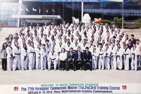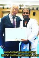 Receiving Certification from Grand Master Kukkiwon, South Korea on closing of 77th Foreign Masters Course at Taekkwondon South Korea,