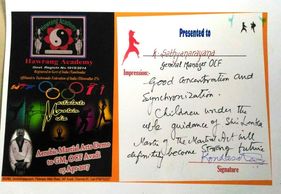 Grand Master Chang Seong Dong 9th Dan Black Belt is a South Korean Ambassador for Taekwondo to India. He is the owner of Sangrok World taekwondo Academy which is exiting in 135countries in the World. He has visited and taught our Academy students in the year 2016-17-18. He has personnally issued COMMENDTION to Academy and founder for promotion of Taekwondo in Chennai India.
