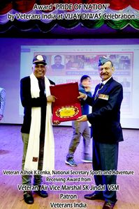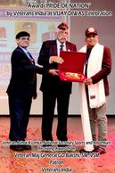 "Pride of Nation" Award from Air Marshal SK Jindal, VSM Patron Veterans India conferred On occassion of Vijay Diwas by Veterans India at DG NCC Auditorium on 15 Dec 2019